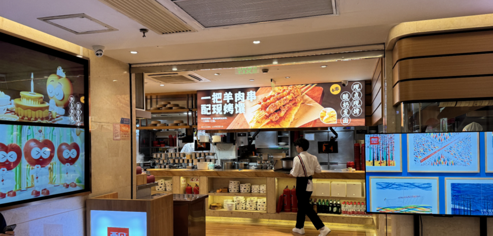 10月27日中午12时,正值周一午餐高峰期,蓝鲸记者在上海市中心一家西贝莜面村看到,等候区坐着大量取号的顾客,餐厅内座无虚席。餐厅门口,透过开放式厨房,厨师制作菜品的过程全程清晰可见。